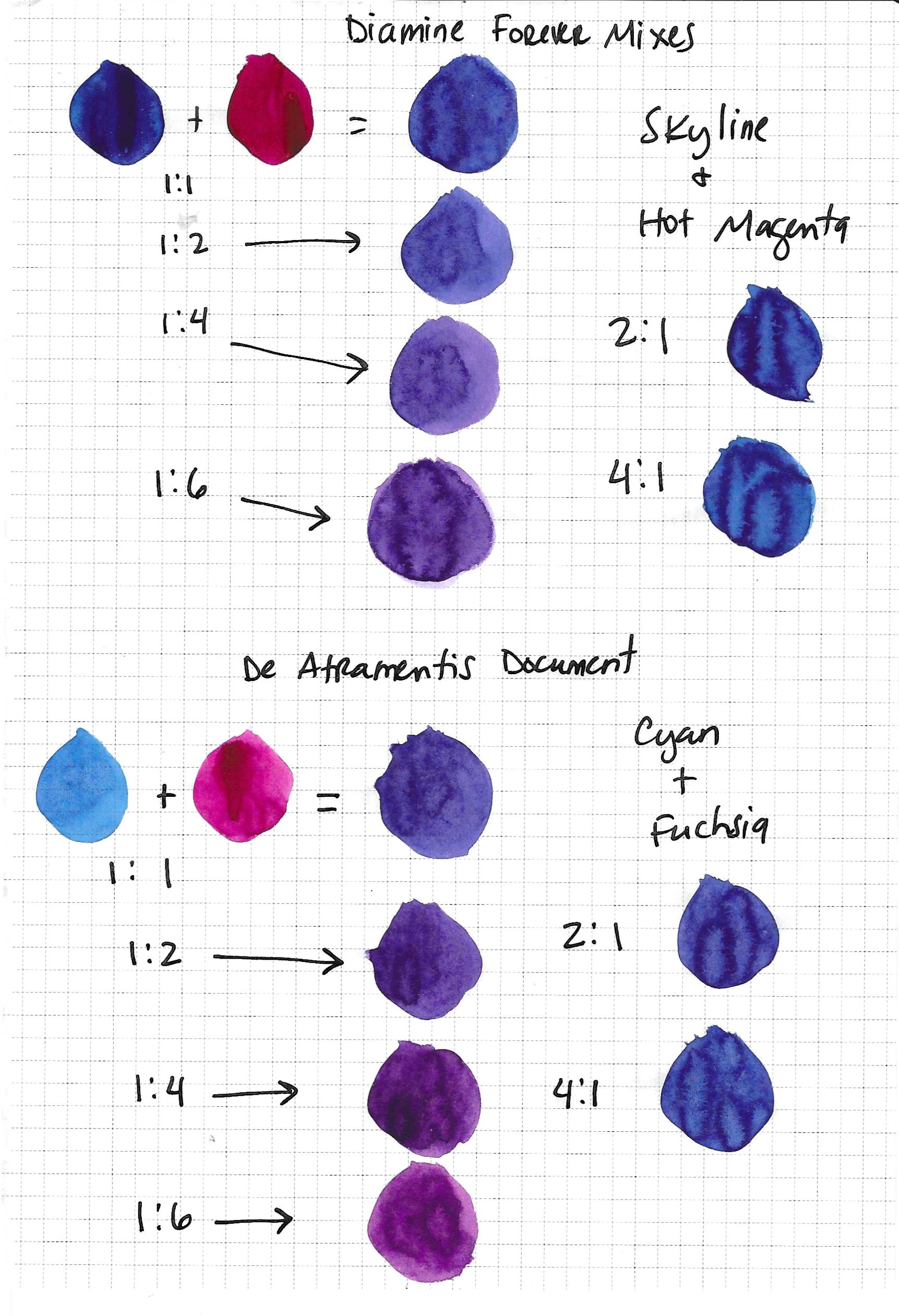 Diamine Forever_DA Document Cyan Magenta mixes