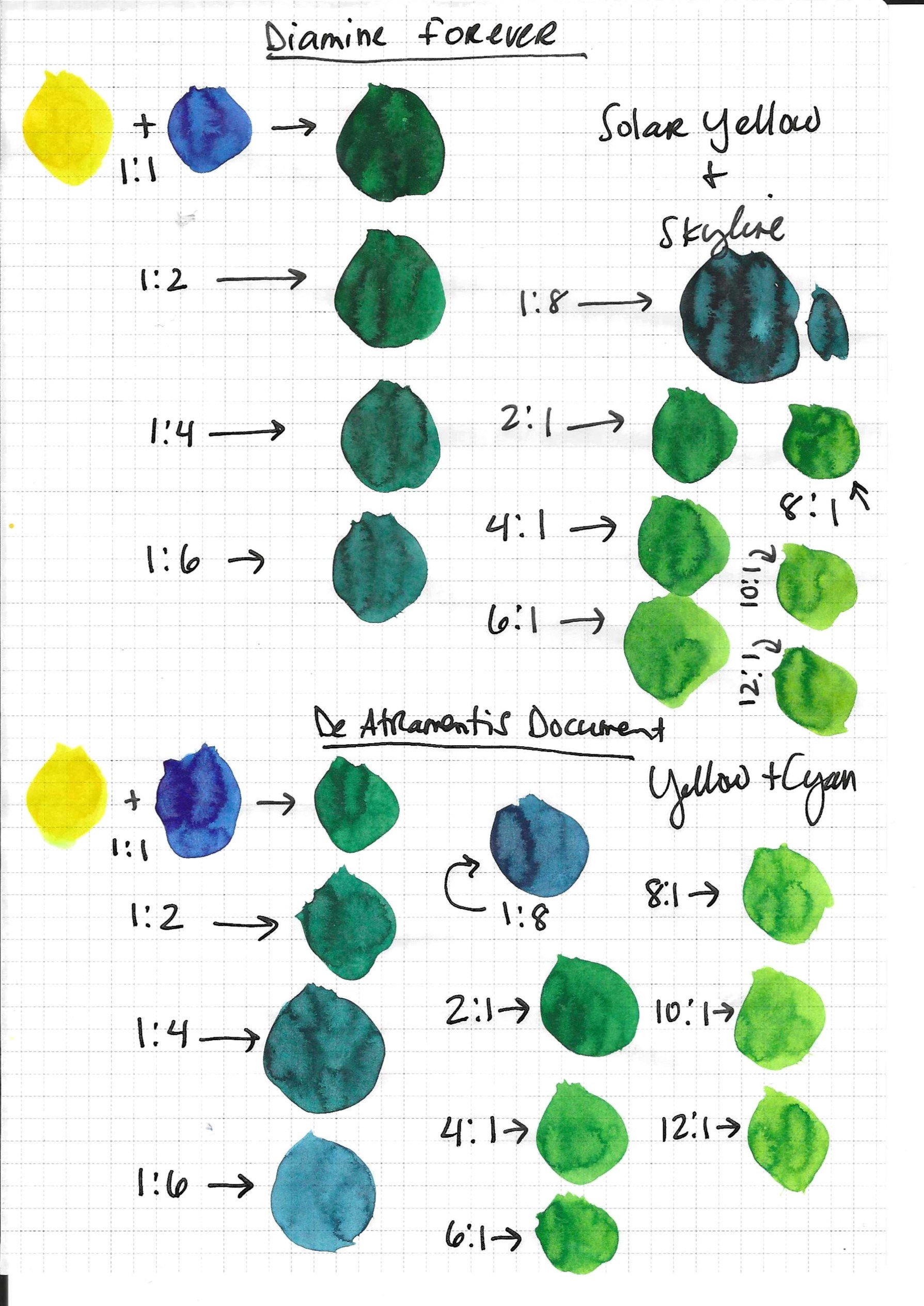 Diamine Forever_DA Document Cyan Yellow mixes